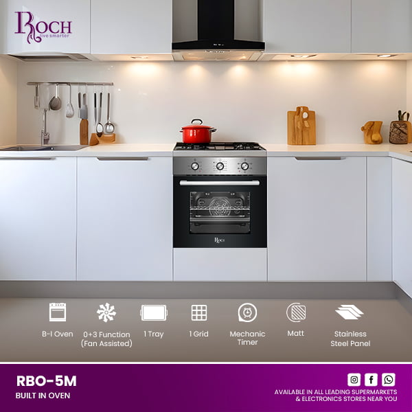 Introducing the RBO-5M Built-In Oven, a versatile addition to your kitchen designed for modern culinary enthusiasts. This oven combines functionality with sleek design elements to elevate your cooking experience. The RBO-5M features a B-l Oven configuration with 0+3 functions, including fan-assisted ... cooking for even heat distribution and perfect results every time. It comes equipped with 1 tray and 1 grid, providing flexibility for various cooking needs from baking to roasting. Built with a robust mechanic timer and a stylish matt stainless steel panel, this oven not only enhances your kitchen aesthetics but also ensures durability and ease of maintenance. The stainless steel finish adds a contemporary touch, blending seamlessly with any kitchen decor. Whether you’re baking delicate pastries or roasting savory meats, the RBO-5M Built-In Oven offers precise control and consistent performance. Its compact design makes it ideal for modern kitchens, maximizing space without compromising on cooking capacity. Upgrade your kitchen with the RBO-5M Built-In Oven and experience the perfect blend of style and functionality. Discover new culinary possibilities and enjoy cooking like never before with this innovative appliance.Read more