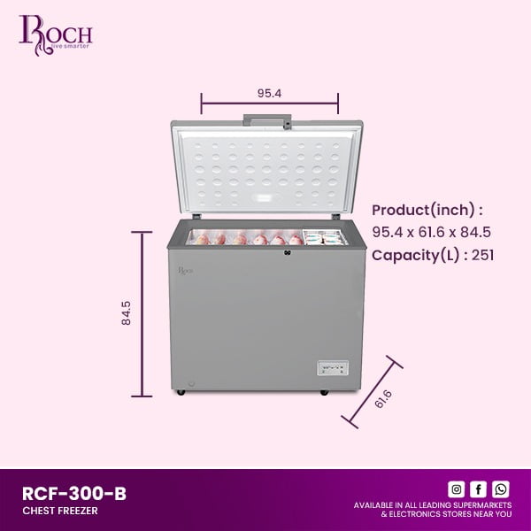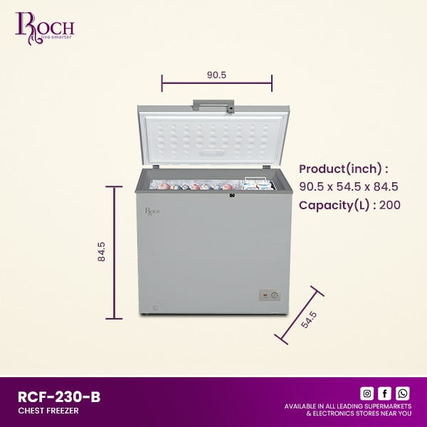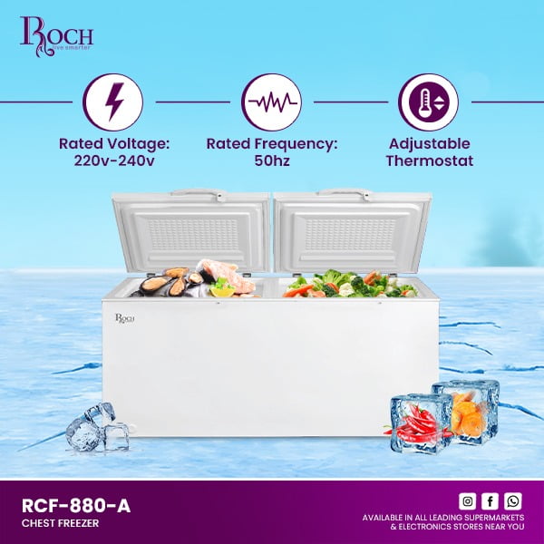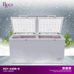 Introducing the RCF-440-B-B Chest Freezer, a spacious and efficient addition to your home or business. With a generous capacity of 380 liters, it offers ample space to store a variety of frozen goods, making it ideal for families, small businesses, ... and commercial settings alike. Measuring 130x70x84.5 centimeters, this freezer is designed to fit seamlessly into your space, providing convenient storage without taking up unnecessary room. Its Power Failure Safe Storage feature ensures that your items stay frozen for up to 36 hours during unexpected power outages, giving you peace of mind. The RCF-440-B-B Chest Freezer is equipped with a convenient sliding glass lid, allowing you to effortlessly access your stored items while keeping cold air inside for maximum efficiency. Bright LED lighting illuminates the interior, making it easy to locate and organize your frozen foods. For added security, the freezer comes with a reliable lock and key mechanism, ensuring that your contents are safe and secure at all times. Whether you’re stocking up on groceries or preserving seasonal produce, the RCF-440-B-B Chest Freezer combines durability, efficiency, and convenience to meet your freezing needs effectively. Upgrade your storage capabilities with the RCF-440-B-B Chest Freezer and enjoy reliable performance and spacious freezing capacity, perfect for any home or business environment.Read more