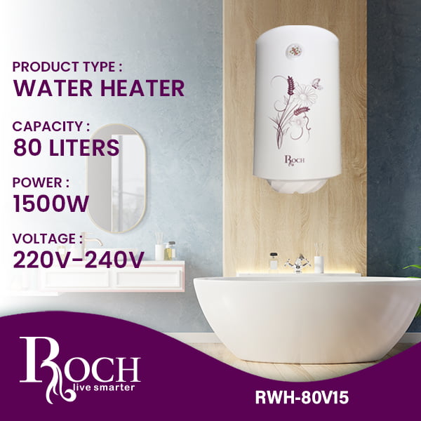 Discover the Roch 80 liter Electric Water Heater – your reliable companion to ensure a continuous and abundant supply of hot water in your home! Designed by Roch, a brand renowned for its excellence in home appliances, this water heater ... is meticulously crafted to deliver superior quality and performance, meeting your hot water needs effortlessly. With an impressive capacity of 80 liters, this water heater is perfectly suited to families and larger households, providing a plentiful supply of hot water for bathing, washing dishes and other daily activities. Its sleek white exterior adds a touch of sophistication to your bathroom while blending seamlessly with any interior decor. Designed to withstand high pressure of up to 8 bar, this water heater is suitable for fireplaces with varying water pressure levels, ensuring consistent, reliable performance regardless of your home’s plumbing system. The powerful 1500W heating element guarantees fast and efficient heating, allowing you to enjoy hot water on demand without any delay. Installation is a breeze thanks to its wall-mountable design, which saves valuable space in your bathroom or laundry room. Operating at a standard voltage of 220V-240V, it is compatible with most power outlets, making installation hassle-free. Backed by a 12 month warranty, you can be sure that the Electric Water Heater Roch 80 liters is designed to last. Whether you’re replacing your current water heater or installing one for the first time, this product provides peace of mind and comfort for you and your family. Say goodbye to cold showers and welcome the luxury of hot water as much as you want with the Roch 80 liter Electric Water Heater. Spruce up your home with this user-friendly and efficient water heating solution today!Read more