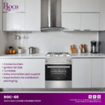 Introducing the ROCH Gas Cooker, Model RGC-60, a reliable companion for your kitchen with its robust features and user-friendly design. This cooker is equipped with 4 durable brass burners, ensuring efficient cooking performance for all your culinary needs. Whether you’re ... simmering, sautéing, or searing, each burner provides consistent heat distribution for precise cooking. The double gas grill glass oven door enhances safety and convenience, allowing you to easily monitor your dishes without heat loss. Control knobs for the gas oven and ignition for the hob are intuitively placed for quick adjustments, while an oven lamp and thermometer ensure accurate baking and roasting results every time. Included with the ROCH Gas Cooker are 2 trays and 1 grid, along with a convenient top glass cover that doubles as additional workspace when not in use. Its sleek stainless steel body with painted gray sides adds a touch of modern elegance to your kitchen, complemented by shiny enamelled pan supports that are both stylish and easy to clean. For added convenience, aqua buttons facilitate safe packaging and transportation, ensuring your cooker arrives in pristine condition. Upgrade your kitchen with the ROCH Gas Cooker and enjoy cooking with precision and style.Read more