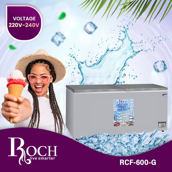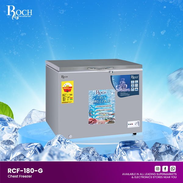 Discover the ultimate freezing solution with the Roch Horizontal Freezer in an elegant gray color, designed to easily meet all your freezing needs. With an impressive capacity of 600 liters, this freezer offers abundant space to accommodate a variety of ... frozen products, making it an ideal choice for households, restaurants and commercial establishments. The Roch RCF-600-G model is designed with a quick freeze function, allowing you to quickly freeze your groceries or freshly prepared meals, thus preserving their flavor and nutritional integrity. Additionally, the interior light illuminates the freezer compartment, ensuring easy visibility and access to your stored items, even in low-light environments. Featuring mechanical temperature control, this chest freezer allows you to customize temperature settings to your preferences, ensuring optimal storage conditions for your frozen delights. Additionally, the manual defrost system simplifies maintenance, making it effortless to remove any frost buildup and ensuring the freezer’s continued cleanliness and efficiency. With a voltage range of 220V-240V, The Roch Horizontal Freezer is suitable for a variety of households and commercial establishments, providing consistent and reliable performance day after day. Additionally, the freezer uses environmentally friendly R134a refrigerant, minimizing its environmental footprint and contributing to sustainability efforts. Backed by a reassuring 12-month warranty, you can have complete confidence in the quality and the durability of the Roch Horizontal Freezer. Whether you need additional freezer space for bulk storage or to meet your business’ frozen product demands, this freezer is the perfect solution. Enhance your freezing capabilities with the Roch Horizontal Freezer (600 L, Gray Color) and enjoy convenient storage and easy access to your frozen products. With its intuitive features and reliable performance, this freezer is guaranteed to meet your freezing needs with ease and efficiency.Read more