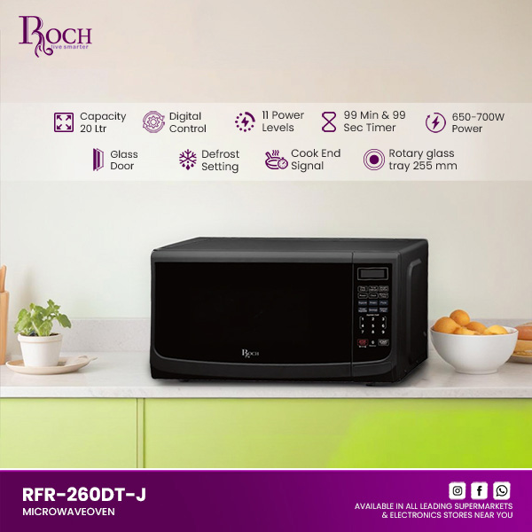 The ROCH Microwave Oven (Model – RMW-20LD7CW-A (W)) is a versatile and convenient addition to any kitchen. With a capacity of 20 liters, it offers ample space for cooking a variety of dishes. The digital control panel makes it easy ...Read more