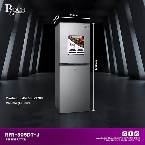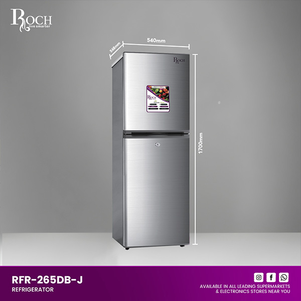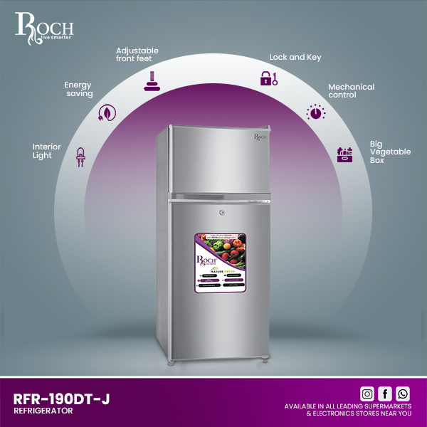 Discover efficiency and convenience with the ROCH Refrigerators 167L (Model – RFR-190DT-J). Designed to enhance your kitchen with its sleek and practical features, this refrigerator is perfect for modern households. Equipped with easy-to-use mechanical controls, adjusting temperatures and settings is straightforward. ... The interior LED light illuminates every corner, making it effortless to find items, even in low-light conditions. Enjoy peace of mind with its energy-saving design, ensuring minimal electricity consumption without compromising performance. The low noise operation ensures a quiet environment, ideal for any living space. For added convenience, the adjustable front feet allow you to stabilize the refrigerator on uneven surfaces, while the lock and key feature provides security for your food and beverages. The spacious vegetable box accommodates large quantities of fresh produce, keeping them crisp and flavorful for longer durations. Dimensions of 545mm in width, 583mm in depth, and 1700mm in height make this refrigerator compact yet capacious, fitting seamlessly into any kitchen layout. With a generous volume of 167 liters, it offers ample storage for your groceries and beverages, catering to the needs of small to medium-sized families. Upgrade your kitchen with the ROCH Refrigerators 167L (RFR-190DT-J) and experience convenience, efficiency, and reliability in one appliance.Read more