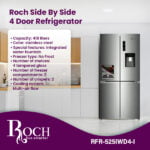 Discover the Roch four-door side-by-side refrigerator (420 liters) equipped with Multi Cooling and ACS technology, designed in elegant stainless steel. This refrigerator is not just a kitchen appliance; it’s a blend of style, innovation and efficiency designed to enhance your ...Read more