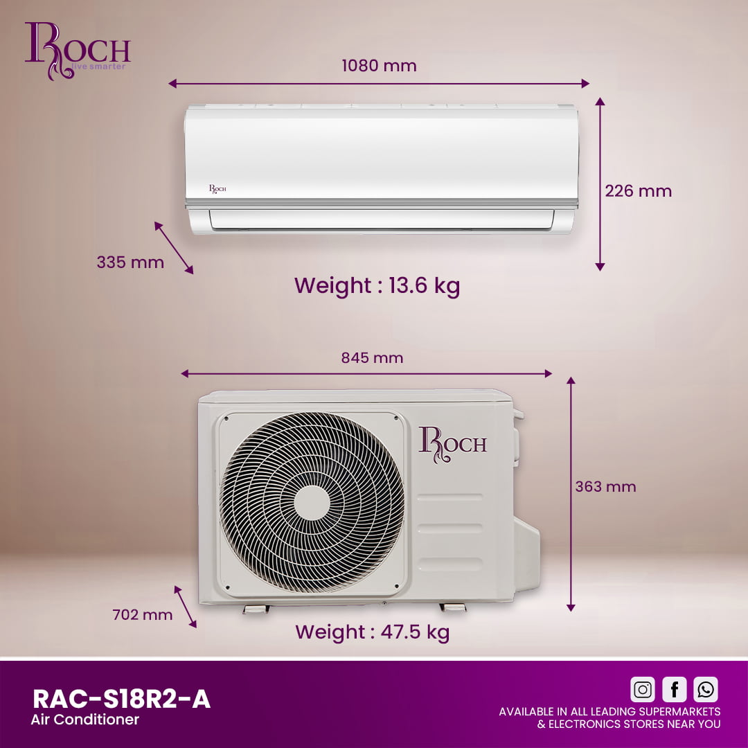 Experience powerful and efficient cooling with the ROCH SPLIT AIR CONDITIONER (RAC-S18R2-A). Designed to provide comfort in any climate, this air conditioner boasts a cooling capacity of 18,000 BTU, making it perfect for medium to large-sized rooms. The unit uses ...Read more