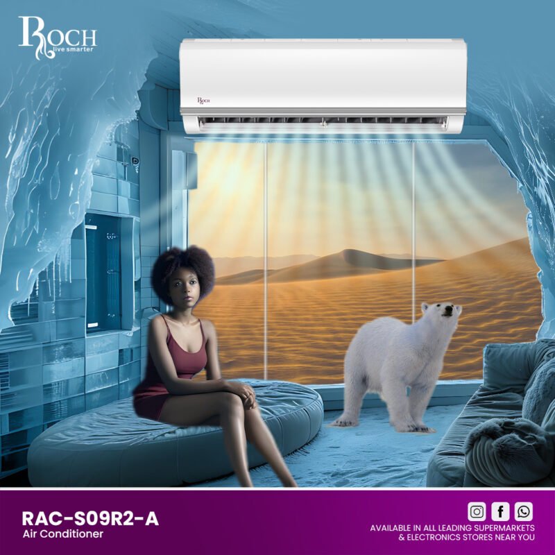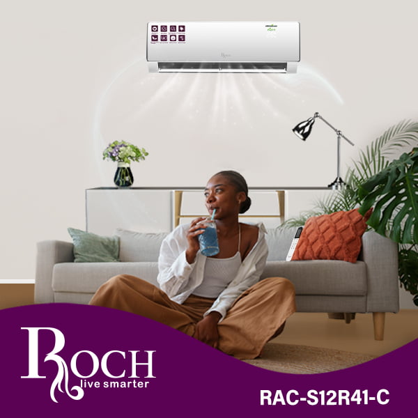 Keep your home or office comfortably cool with the Roch 9000 Btu R410A split air conditioner. Manufactured by ROCH, a trusted brand known for its high-quality appliances, this air conditioner offers impressive cooling power with a range of convenient features ... to ensure a pleasant indoor environment. The Roch split air conditioner offers cooling capacity of 9000 BTU, making it ideal for medium-sized rooms. Equipped with a 1 HP motor, it regulates the temperature effectively, providing a constant and comfortable atmosphere. The use of R-410A refrigerant ensures efficient, environmentally friendly cooling that meets modern green standards. Designed for easy use and installation, this air conditioner features a tropical compressor that operates smoothly reliable even in hot climates. The night mode function saves energy during the night, maintaining comfort while you sleep. In the event of a power outage, the automatic restart function ensures that the unit resumes operation with previous settings. The Roch split air conditioner is equipped with a dust filter and Cool Jet automatic cleaning technology Gold Fine, which helps maintain air quality by reducing allergens and pollutants. This makes it an excellent choice for homes with allergy sufferers or anyone wanting to improve indoor air quality. The indoor unit measures 1080 x 226 x 335mm and weighs 13.6kg, while that the outdoor unit measures 845 x 363 x 702 mm and weighs 47.5 kg. This design ensures that the air conditioner is both compact and powerful, fitting seamlessly into your space. Guaranteed for 2 years, the Roch 9000 Btu R410A split air conditioner offers peace of mind and reliable service. With its blend of advanced features, easy installation, and robust performance, this air conditioner is a great choice for those seeking comfort and efficiency.Read more