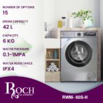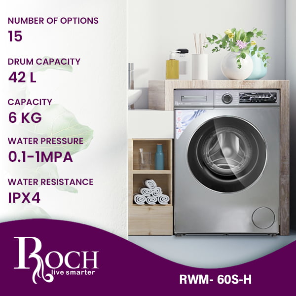Introducing the Roch 6 Kg Washing Machine (A+++) in gray color, your ultimate laundry companion designed to make washing clothes a breeze. With Roch, you can trust quality and innovation, and this washing machine is no exception. Featuring a generous 6KG ... capacity, this washing machine is perfect for households of all sizes. Whether you’re washing a few delicates or a full load of laundry, this machine can handle it with ease. With 15 different options, you have the flexibility to customize each wash cycle to meet your specific needs. From quick washes for lightly soiled items to heavy-duty cycles for heavily soiled clothes, this washing machine offers the versatility to tackle any laundry challenge. Equipped with a 42 liter drum capacity and a powerful spin speed of 1000 revolutions per minute, this washing machine guarantees deep cleaning and efficient water extraction, leaving your clothes clean and fresh every time. This washing machine does not Not only does it provide exceptional performance, it also stands out for its impressive energy efficiency with its A+++ energy classification. Save up to 20% on your energy bills while reducing your environmental footprint – it’s a win for you and the planet. Operating at a voltage of 220V-240V and a maximum current of 10A, this washing machine is suitable for most homes. With a water pressure range of 0.1 to 1 MPA and an IPX4 rated water resistance rating, you can count on reliable performance with every use. With dimensions of 845 * 597 * 527 mm and a weight of 60 kg, this washing machine is compact enough to fit into tight spaces while still providing ample capacity for your laundry needs. Plus, with a 12-month warranty included , you can buy with confidence knowing your investment is protected. Enhance your laundry experience with the Roch 6 Kg (A+++) Washing Machine in gray color – efficiency, performance and convenience combined in one stylish package.Read more