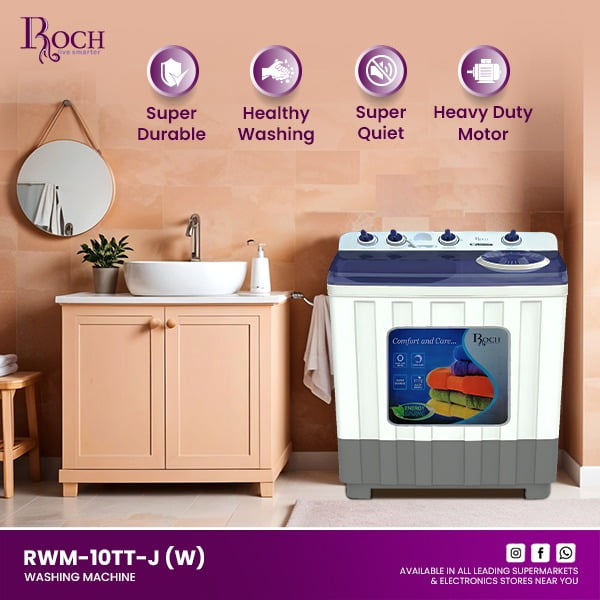 Introducing the ROCH Washing Machine, designed to simplify your laundry days with its robust features and user-friendly operation. Engineered with a Heavy Duty Motor, this machine ensures powerful performance while operating quietly, allowing you to enjoy peace of mind even ... during spin cycles. Quiet and Durable Experience laundry bliss with super quiet operation, making it ideal for any home environment. The machine’s durability ensures long-term reliability, handling your laundry needs effectively day after day. Healthy Washing Prioritizing your family’s health, the ROCH Washing Machine offers a thorough and hygienic wash for your clothes. Its advanced cleaning technology ensures that your garments come out fresh and clean with each cycle. Compact Design With dimensions of 807 × 476 × 997 mm, this washing machine fits seamlessly into various spaces, whether it’s in your laundry room or a dedicated corner of your home. Its sleek design adds a modern touch to your living space. Capacity The ROCH Washing Machine boasts a generous capacity with a 10.0 kg wash load and 6.5 kg spin capacity, making it suitable for larger households or those with heavy laundry requirements. Transform your laundry routine with the ROCH Washing Machine – where innovation meets simplicity for everyday convenience. Enjoy efficient washing, durability, and quiet operation in one powerful package. Discover how this machine can elevate your home’s laundry experience today.Read more
