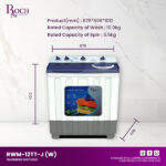 Introducing the WASHING MACHINE (RWM-12TT-J(W)), designed to make your laundry days easier and more efficient. This model boasts a heavy-duty motor, ensuring robust performance for even the heaviest loads. Despite its powerful motor, it operates super quietly, allowing you to ... wash your clothes at any time without disturbing your household. Durability is a key feature of the WASHING MACHINE (RWM-12TT-J(W)). Built to last, it can handle frequent use while maintaining optimal performance. Its healthy washing feature ensures that your clothes are thoroughly cleaned and cared for, promoting better hygiene and freshness. The machine’s dimensions are 876mm in length, 506mm in width, and 1012mm in height, making it a perfect fit for various laundry spaces. With a rated wash capacity of 12.0kg, it can handle large loads, saving you time and effort. Additionally, the rated spin capacity of 6.5kg ensures your clothes are efficiently dried, reducing drying time. Choose the WASHING MACHINE (RWM-12TT-J(W)) for a reliable, quiet, and durable laundry solution that keeps your clothes clean and fresh. Enjoy the convenience of a high-capacity washer that fits seamlessly into your home.Read more